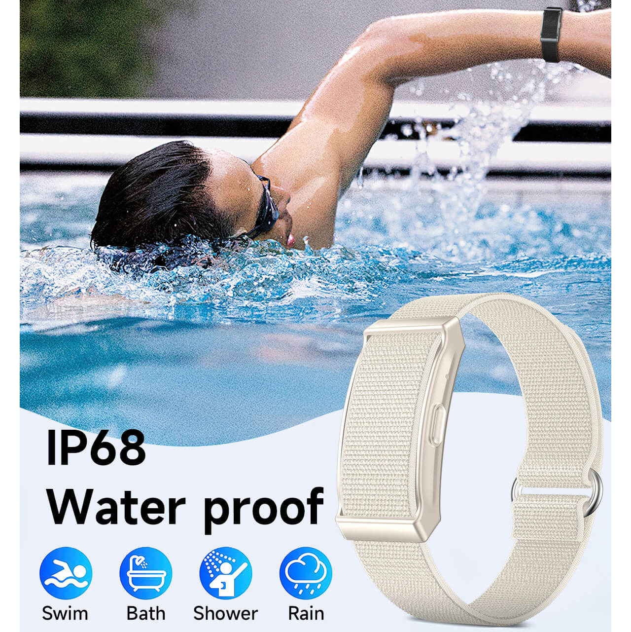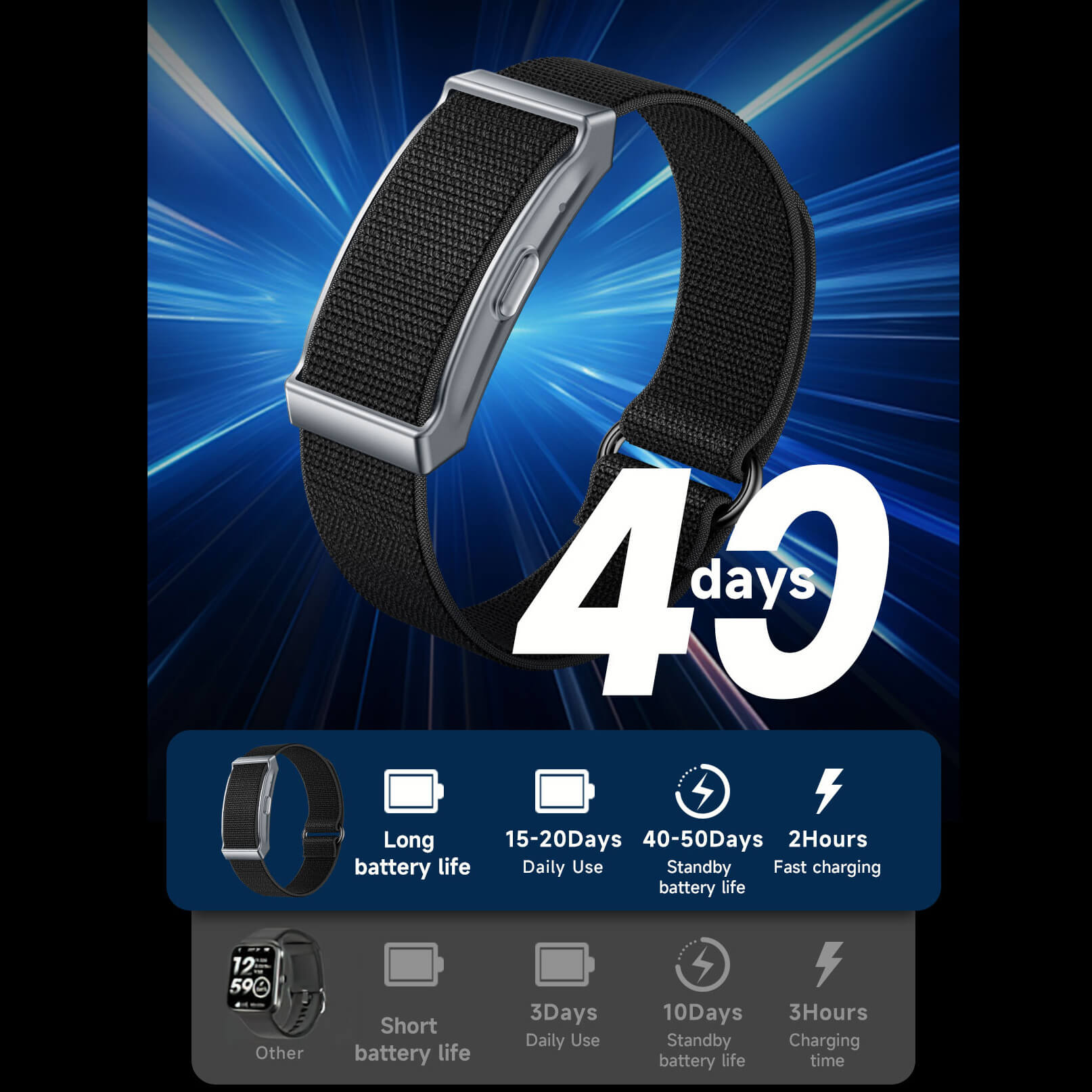 Léger et confortable ; livré avec des bracelets en silicone et en nylon.