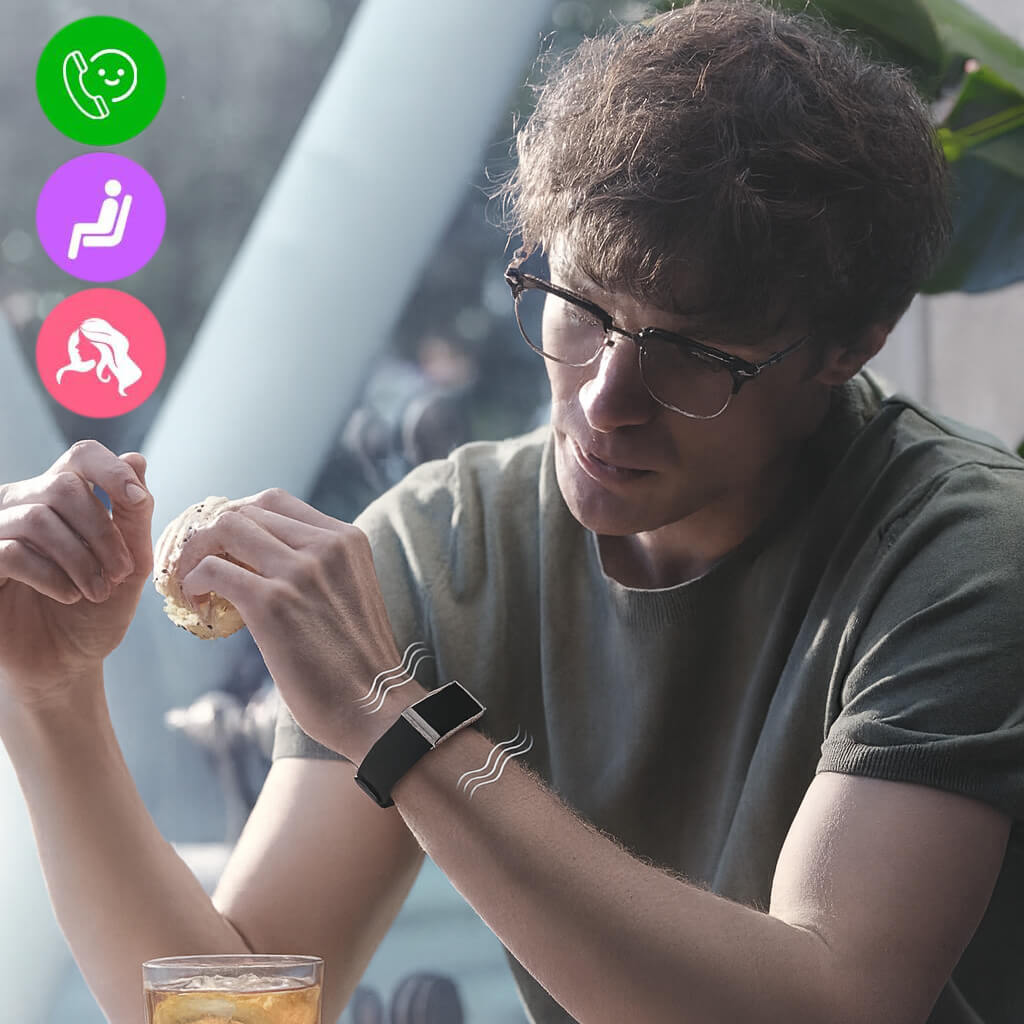 Alertes par vibration pour les appels, messages, périodes d’inactivité et alarmes.